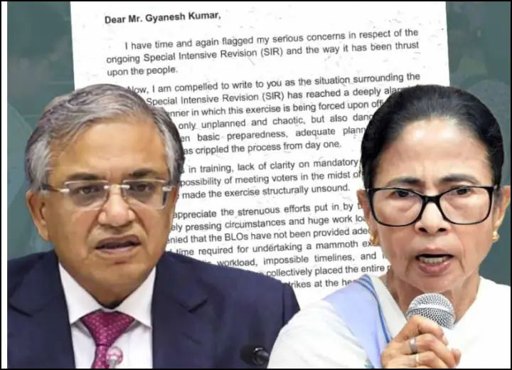 ‘উপযুক্ত প্রশিক্ষণ ছাড়া জোর করে চাপিয়ে দেওয়া কাজ বন্ধ হোক। মানুষের উপর চাপিয়ে দেওয়া হচ্ছে। পরিকল্পনাহীন ভাবে আধিকারিক ও মানুষের উপর চাপ দেওয়া হচ্ছে, যা খুবই বিপজ্জনক। বিএলও-দের পর্যাপ্ত প্রশিক্ষণ দেওয়া হয়নি। এত কম সময়ের মধ্যে বিএলও-দের উপর অবাস্তব কাজের চাপ। সাধ্যের ঊর্ধ্বে গিয়ে কাজ করতে হচ্ছে। পর্যাপ্ত সময় দেওয়া হোক এসআইআর-এর জন্য। অবলম্বন করা হোক সঠিক পদ্ধতি।’ এমন বিস্ফোরক অভিযোগ করে দেশের মুখ্য নির্বাচন কমিশনার জ্ঞানেশ কুমারের কাছে চিঠি পাঠালেন বাংলার মুখ্যমন্ত্রী মমতা বন্দ্যোপাধ্যায়।