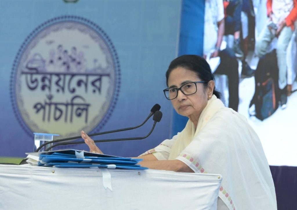পর্যটনে সাফল্য তুলে ধরে তিনি বলেন, ‘২৪ কোটি দেশি বিদেশি পর্যটক এসেছে বাংলায় শুধু ২০২৫ এর অক্টোবরে। দেশের মধ্যে এখন দ্বিতীয়। হিন্দু মুসলিম শিখ ইশাই সব জাতি ধর্মের মানুষকে আমরা সম্মান করি তাই সব ধর্মের মানুষের জন্য আমরা কাজ করেছি। ২০১১ সাল থেকে এখনও পর্যন্ত ৬ কোটি ৫৬ লক্ষ পাট্টা দেওয়া হয়েছে। দিঘায় জগন্নাথ মন্দির হয়েছে, শিলিগুড়িতে হয়েছে মহাকাল মন্দির। হরিচাঁদ ঠাকুরকে সম্মা জানিয়ে বিশ্ববিদ্যালয় করা হয়েছে। সব উদ্বাস্তু কলোনিকে আইনি স্বীকৃতি দেওয়া হয়েছে। ১৪ বছরে ৯৯ লক্ষ পরিবারকে পানীয় জল পৌঁছে দেওয়া হচ্ছে। পানীয় জল প্রকল্পেও কেন্দ্র টাকা বন্ধ করে দিয়েছে। ১ হাজার ৭০০ কোটি টাকা দিয়ে গঙ্গাসাগর সেতু তৈরি করেছি। ঘাটাল মাস্টার প্ল্যানেও অনেকটা কাজ করেছি। রাজ্যে ২ কোটি ২১ লক্ষ পরিবার লক্ষ্মীর ভাণ্ডার পাচ্ছে। ১ কোটি ছাত্রীকে দেওয়া হচ্ছে কন্যাশ্রী। রূপশ্রীর আওতায় ২২ লক্ষ মেয়ের বিয়ে হয়েছে। স্বাস্থ্যখাতে বাজেট ৬ গুণ বেড়েছে। ২ কোটি ৪৫ লক্ষ পরিবারকে স্বাস্থ্যসাথী দেওয়া হচ্ছে। আবাস যোজনায় ৬৭ লক্ষ ৬৯ হাজার বাড়ি তৈরি করা হয়েছে। মোট ১ কোটি বাড়ি তৈরির পরিকল্পনা রয়েছে। ১০০ দিনের কাজেও আমরা এক নম্বরে ছিলাম। ১০০ দিনের কাজ বন্ধ করায় কর্মশ্রী প্রকল্প চালু করেছি। কর্মশ্রী প্রকল্পে ৭০ দিনের বেশি কাজ দেওয়া হয়েছে। ফিরে আসা ১ লক্ষ ৩১ হাজার পরিযায়ী শ্রমিককে। ক্ষুদ্র শিল্পে রাজ্যে ১ কোটি ৩০ লক্ষের বেশি কর্মসংস্থান। মহিলা পরিচালিত ক্ষুদ্র শিল্প এ রাজ্যেই দেশের মধ্যে সর্বাধিক। ১২ লক্ষ স্বনির্ভর গোষ্ঠী চালু করেছি। ২০১১ সালের তুলনায় কর আদায় বেড়েছে ৫.৩১ গুণ। কৃষি ক্ষেত্রে উন্নতি হয়েছে ৯.১৬ গুণ। বাংলা এখন সারা দেশের মডেল। ২০২৩ সালের মধ্যে আমরা ১ কোটি ৭২ লক্ষ মানুষকে আমরা দারিদ্রসীমার উপরে তুলে এনেছি। ১৪ বছরে রাজ্যে ২ কোটিরও বেশি কর্মসংস্থান হয়েছে। সারা দেশে বেকারত্বের স্থান ৪০ শতাংশ কমিয়েছি। ৬টি অর্থনৈতিক করিডর হচ্ছে। এর মধ্যে ২ লক্ষ কোটি টাকার বেশি বিনিয়োগের সম্ভাবনা হয়েছে।’