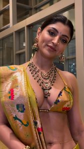 কারণ? ঐতিহ্যবাহী পৈঠানী শাড়ির সঙ্গে তাঁর সাহসী bikini blouse fashion—এই অপ্রত্যাশিত কম্বিনেশনই এখন ভাইরাল।